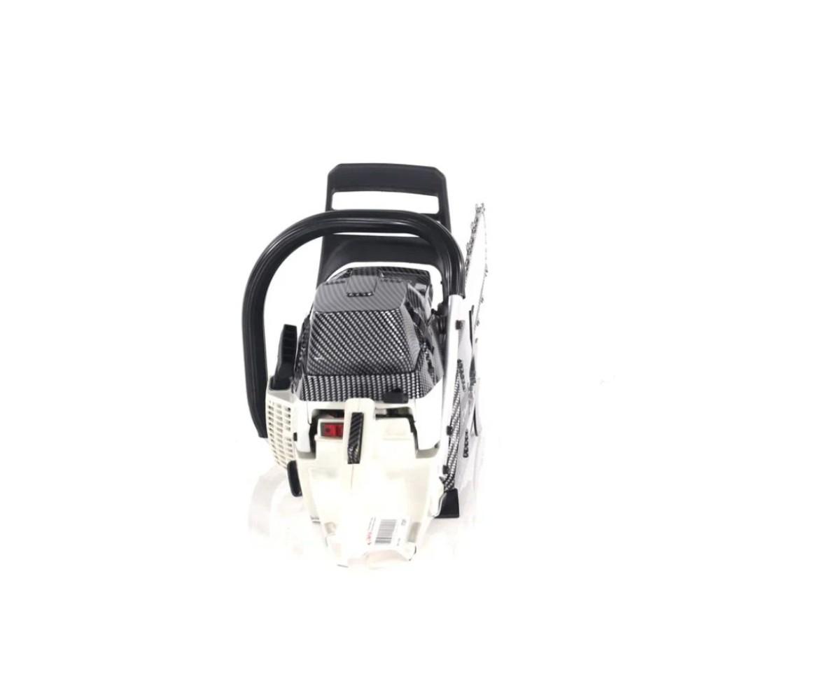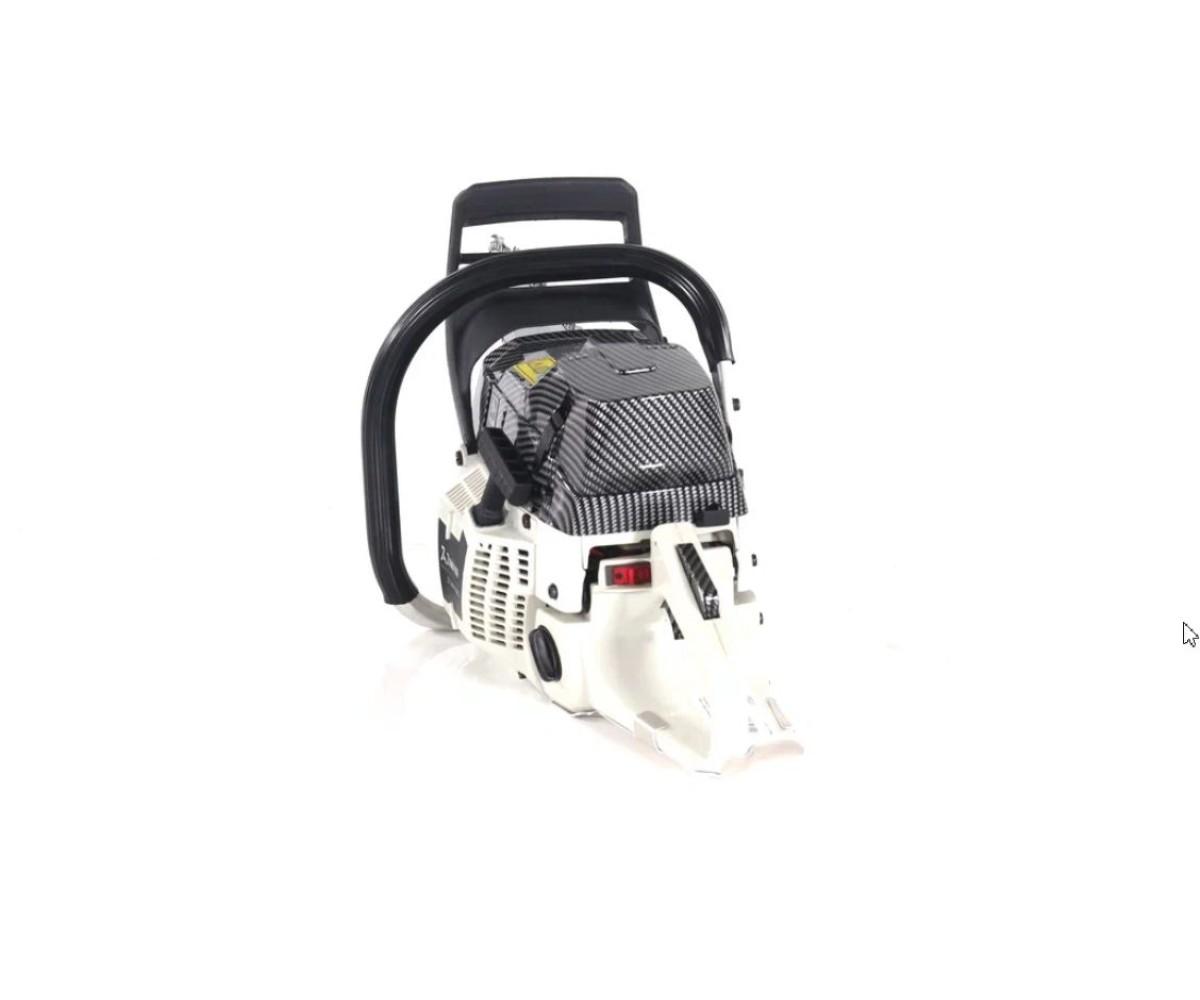 Бензопила ZimAni 372XP PRO– это незаменимый инструмент в хозяйстве, строительстве и лесозаготовке. Ее основное предназначение – распил древесины, но в зависимости от модели и характеристик, она может использоваться и для других задач, таких как работа с ветками, распиливание строительных материалов или даже прореживание лесных насаждений. Важно понимать, что успешная эксплуатация бензопилы зависит от множества факторов: от мощности двигателя до длины шины, от конструкции карбюратора до особенностей цепи. В этой статье мы подробно рассмотрим ключевые характеристики бензопилы и объясним, какие особенности делают ее универсальным и мощным инструментом. 1. Двигатель бензиновый: Основные характеристики Бензопила с бензиновым двигателем – это стандарт для большинства моделей. Ее отличает высокая мощность и независимость от источников электричества, что делает такую пилу мобильной и удобной в условиях открытого пространства, лесных и строительных работ. Рассмотрим основные характеристики бензинового двигателя: · Объем двигателя: 70.7 см³. Это достаточно мощный мотор для бензопилы, который позволяет обеспечивать хорошую производительность при обработке древесины средней и большой толщины. · Мощность: 5.3 л.с. (лошадиных силы). Эта мощность позволяет инструменту легко справляться с тяжелыми нагрузками, такими как распил толстых стволов или длительная работа в условиях большого объема работ. · Максимальные обороты: 11 150 об/мин. Это значение указывает на то, как быстро двигатель может работать на пиковых нагрузках. Высокие обороты увеличивают эффективность работы цепи, позволяя пилить быстрее и с меньшими усилиями. · Карбюратор Walbro: Карбюратор Walbro известен своей надежностью и долговечностью. Он способствует стабильной работе двигателя при различных температурных и погодных условиях, а также улучшает экономию топлива. · Поршень Meteor: Поршни от компании Meteor известны своим качеством и долговечностью.